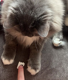Surprise! You clicked on my secret link. Here are pictures of my cat, Knox. He has white paws that successively get more white with each paw. One time after surgery a patch of his stomach fur never grew back, sometimes I blow raspberries on it.